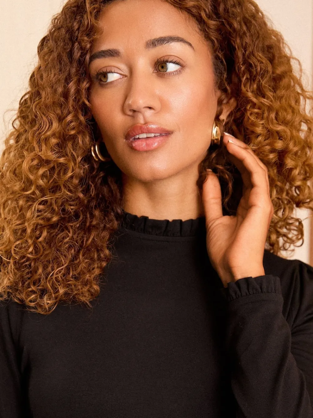 Zwart – jersey top met ruches aan de hals en lange mouwen*Love & Roses Sale