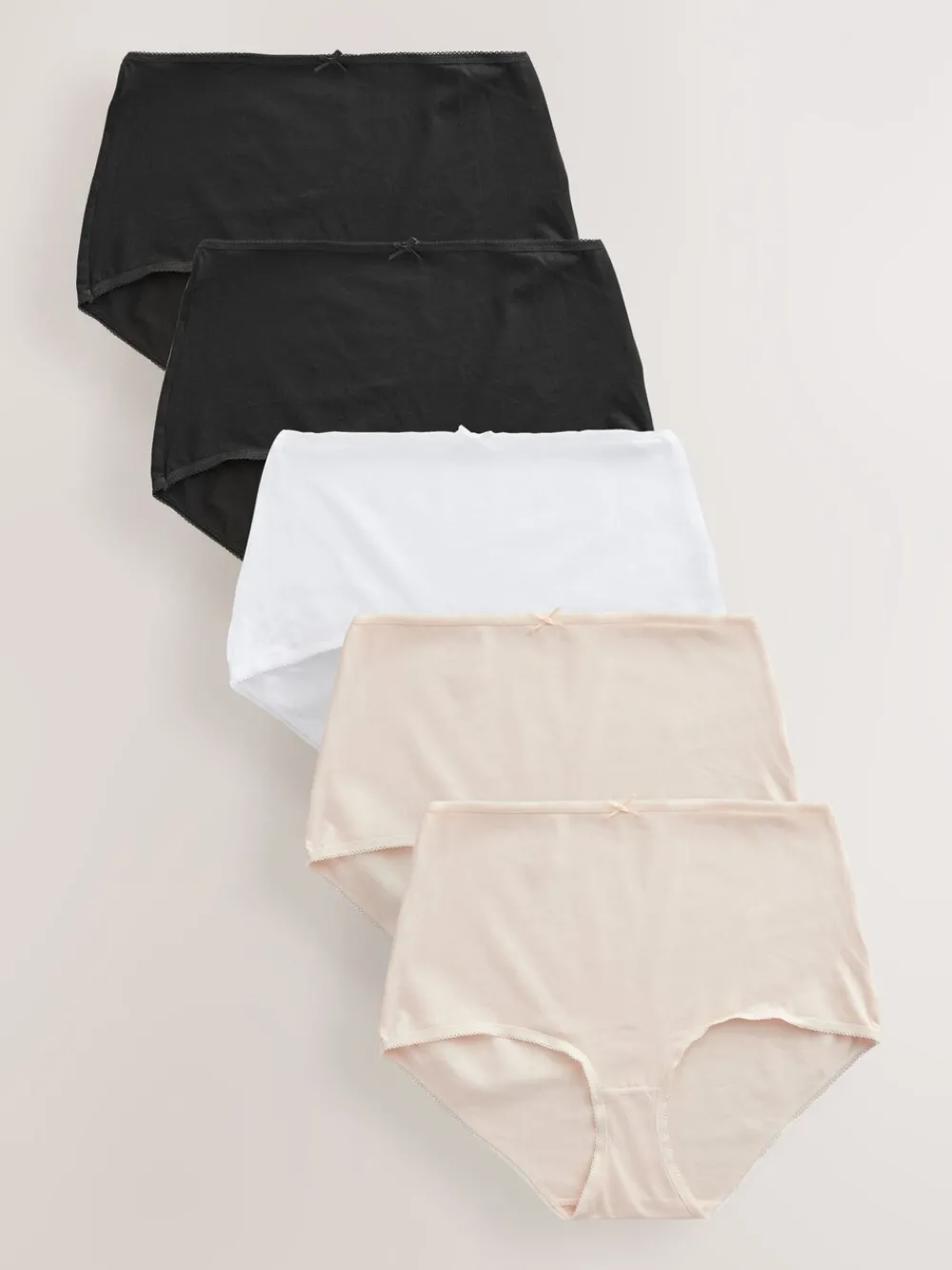 Zwart/pastelroze huidskleur/wit – Set van 5 slips met hoog katoengehalte*Next New