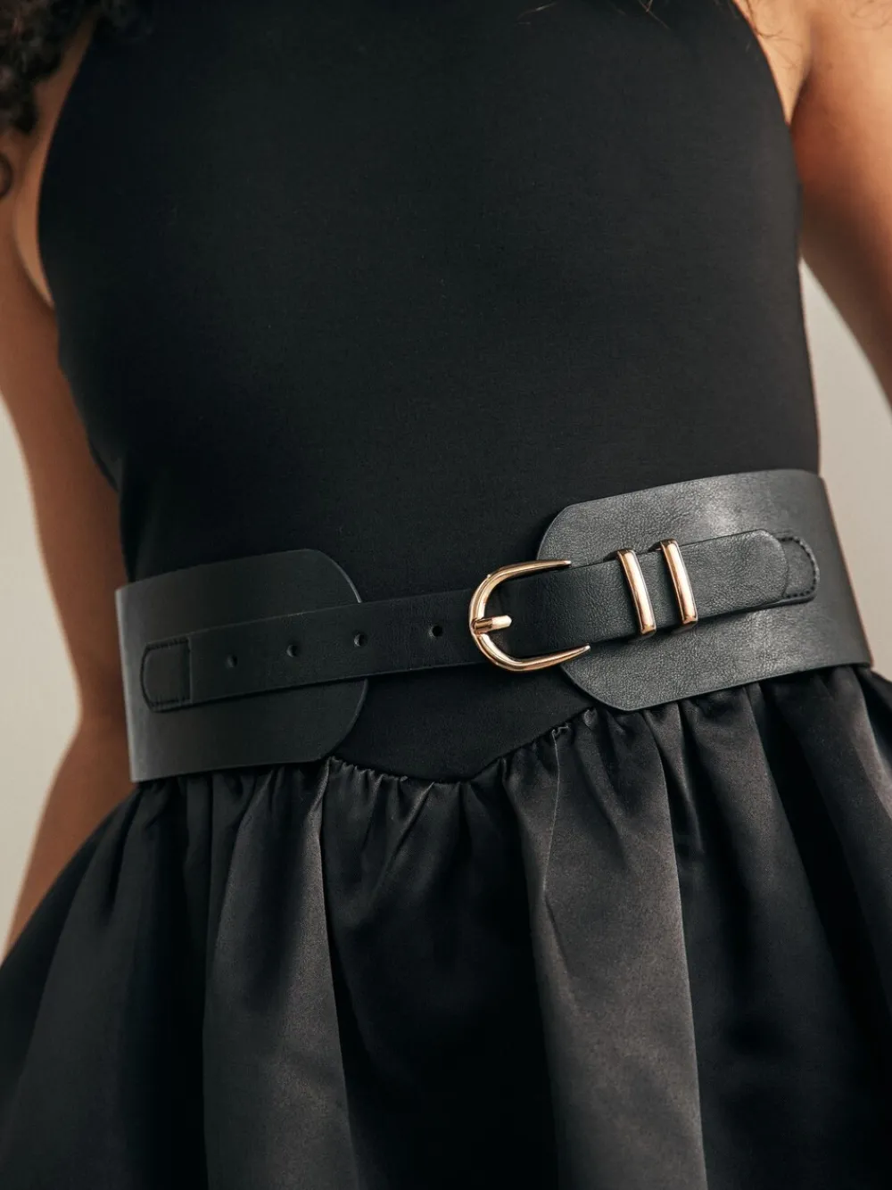 Deze zwarte riem in korsetstijl is gemaakt van PU-imitatieleer en heeft een breed ontwerp dat ideaal is om om uw taille te dragen voor een figuurflatterende look. De riem is afgewerkt met een elastische achterkant en goudkleurige hardware. PU-kunstleer Brede vorm Elastische rug Bovenkant 100% polyurethaan. Afwerking 60% polyester, 40% elastaan.