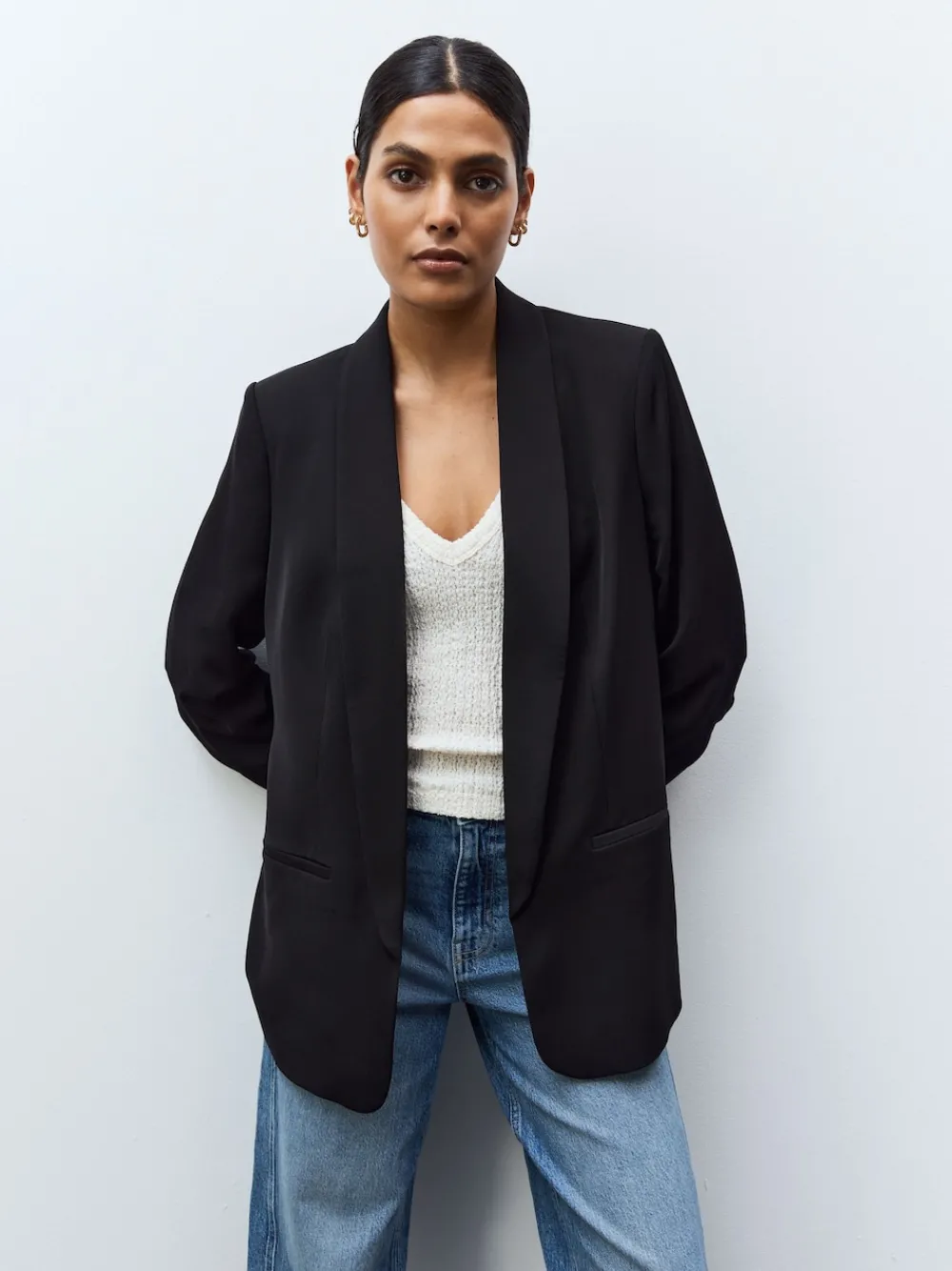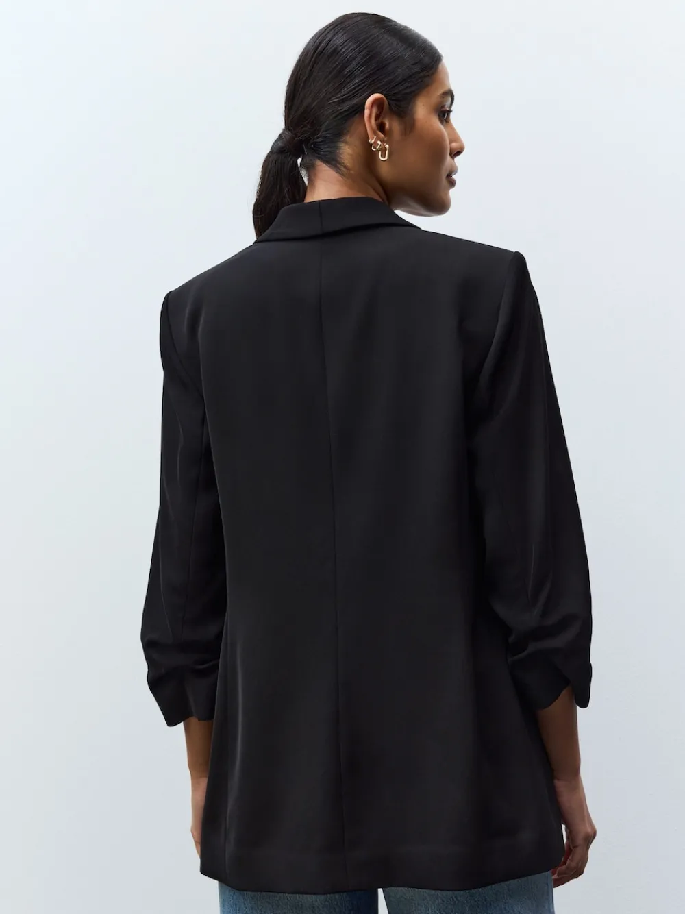 Dit relaxte zwarte Blazer is gemaakt van een zachte, soepele stof en heeft gerimpelde mouwen, nepzakken aan de voorkant en naaddetails voor een mooie pasvorm. Deze Blazer heeft een relaxte pasvorm en ziet er toch netjes uit. Draag ze gewoon over een jeans en een T-shirt, of draag ze chique met een pantalon en een hak. Relaxte pasvorm Zachte, soepele stof Valse paspelzakken Standaard van het midden van de nek tot de zoom 27.5″ / 70 cm. Machinewasbaar. Hoofdbestanddeel 100% gerecycled polyester. Voering 100% gerecycled polyester. Artikelen met het curve-logo zijn verkrijgbaar in de maten 18 en groter. Onze tall collectie is ontworpen om te passen bij vrouwen van 5’10” en langer. Dit is verhoudingsgewijs vergroot door het lichaam, de benen en de mouwen om de perfecte pasvorm te bereiken. Verkrijgbaar in maat 8-20.