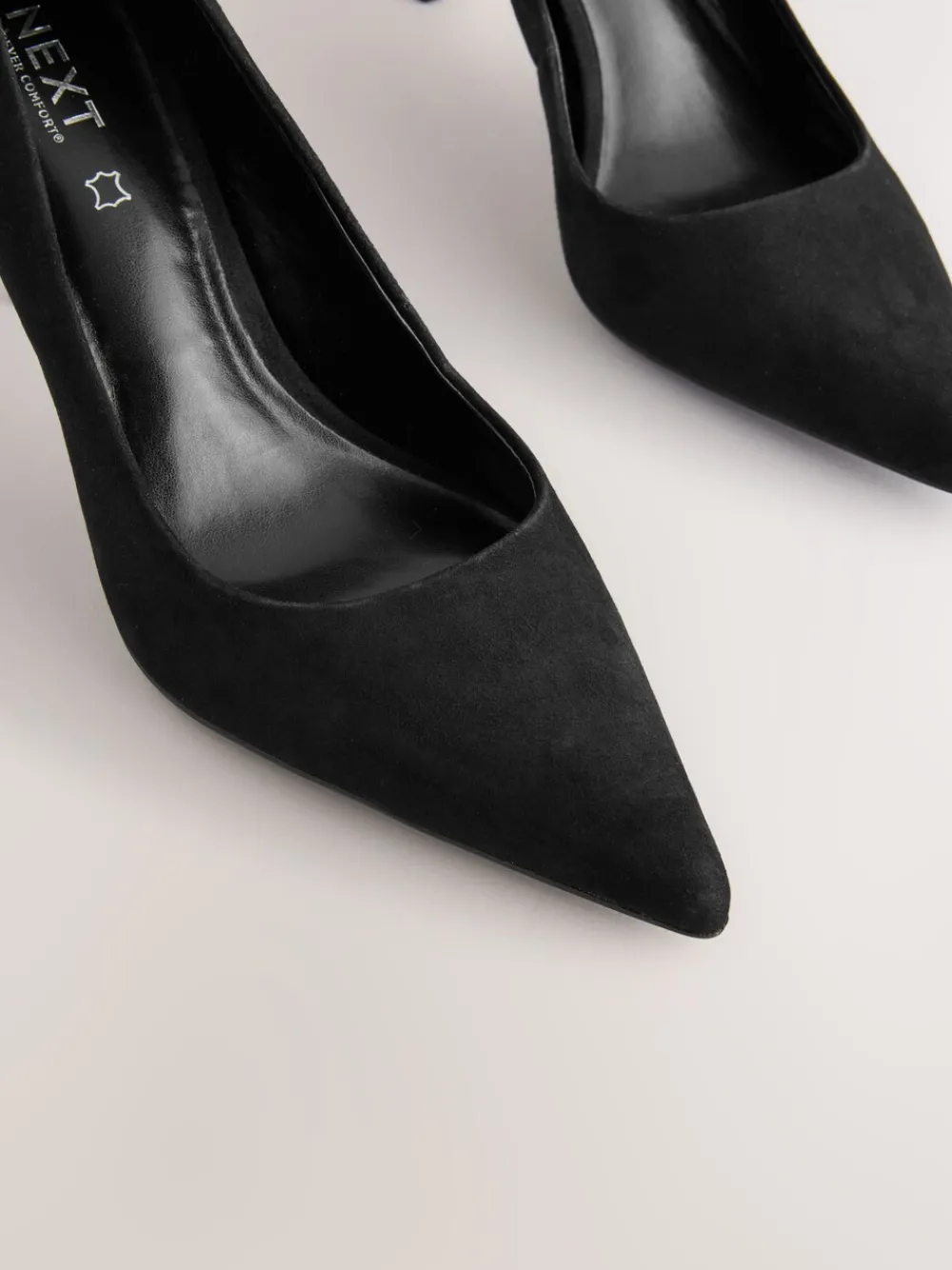 Deze zwarte suède pumps zijn eenvoudig te stylen en tijdloos. Ze hebben een leren bovenkant met een ademende leren voering, een stijlvol puntig neusontwerp en een stilettohak. De Forever Comfort ® binnenzool zorgt voor de hele dag comfort dankzij het ondersteunende traagschuim. Leren bovenkant Puntige neus Hoge schoen Instapmodel Hoge hak Forever Comfort ® memory foam vulling Hakhoogte 8,5 cm. Bovenwerk – leer; voering en voetbed – overige materialen, zool – Andere materialen.