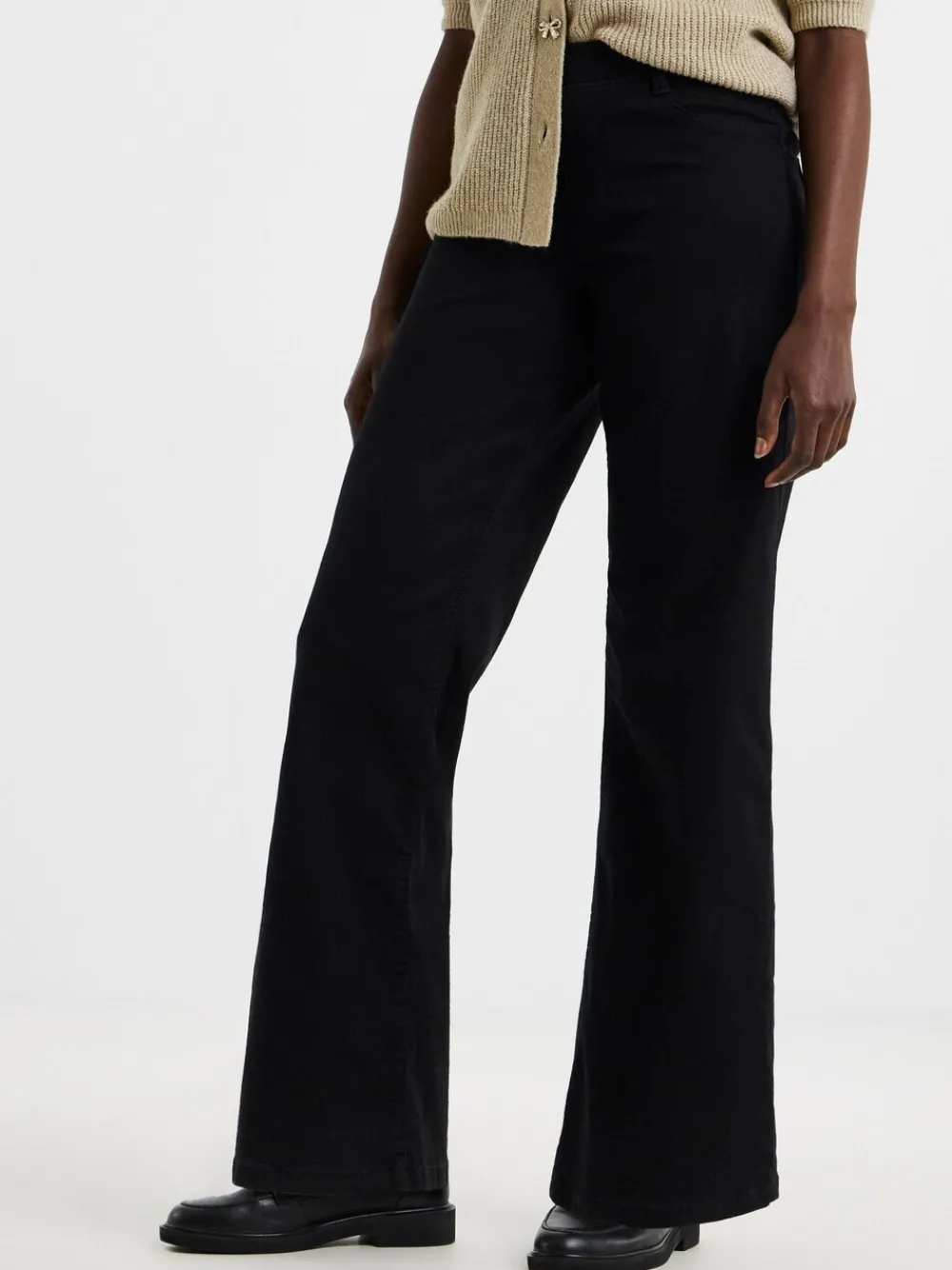 Our new wide leg jeggings have been updated for this season, now made from cotton. Experience ultimate style and comfort as you pull on these gorgeous wide leg jeggings with an improved fit designed specifically to fit perfectly around the waist and hips. The elasticated waistband ensures maximum comfort whilst the well loved super stretchy denim fabric provides a luxurious feel. The wide leg shape flatters your silhouette and will hug your curves in all the right places. A staple in your wardrobe, pair with your favourite heels and blouse for a timelessly chic look. Standaard met binnenbeenlengte van 30″ / 76 cm. Long binnenbeenlengte 32″ / 81cm. Machinewasbaar. 67% Katoen, 31% Polyester, 2% Elastaan.